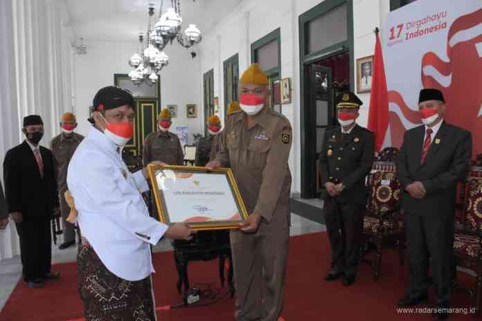 RADARSEMARANG.COM, Wonosobo – Sebanyak 65 veteran asal Wonosobo mendapat apresiasi atas jasa dalam memperjuangkan dan merebut kemerdekaan Republik Indonesia. Penghargaan diserahkan Bupati Wonosobo Afif Nurhidayat usai mengikuti upacara virtual HUT Kemerdekaan RI Selasa (17/8/2021).