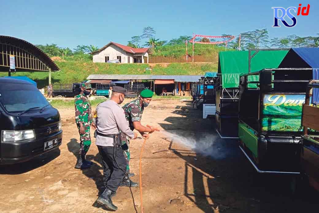 RADARSEMARANG.COM, Wonosobo – Sejumlah petugas gabungan melakukan penyemprotan disinfektan di Pasar Hewan Sapuran Rabu (17/5). Hal ini dilakukan untuk menyeterilkan lokasi dari wabah penyakit mulut dan kuku (PMK) yang sudah masuk wilayah Wonosobo.