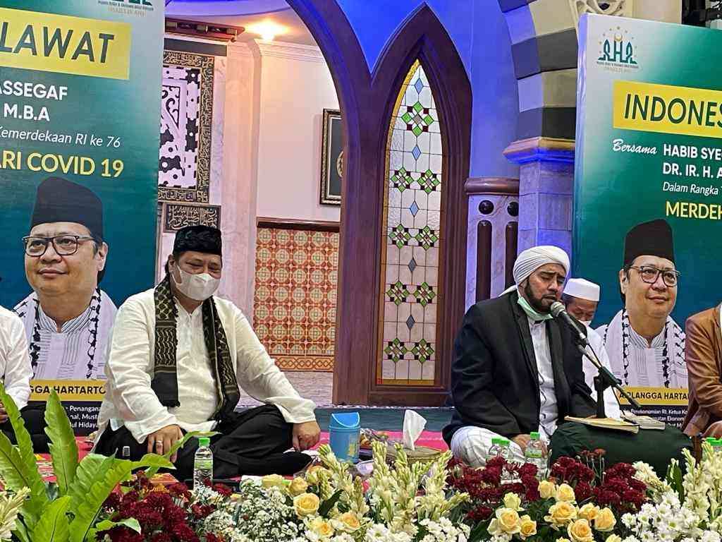 “Sebagai bangsa, kita patut mensyukuri atas nikmat Allah SWT berupa kemerdekaan yang telah diberikan kepada negara kita dengan bersholawat dan berdzikir memanjatkan doa dengan khusyu dan ikhlas kepada Allah SWT agar pandemi Covid-19 segera berakhir,” ucap Menko Perekonomian dan Ketum Partai Golkar itu.