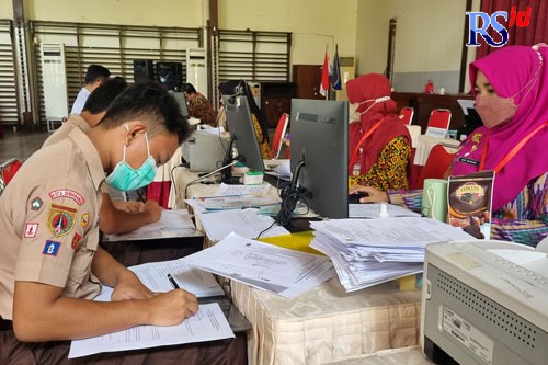 Dua orang tua siswa juga datang ke sekolah untuk dibantu proses pengisian data dan verifikasi. Sementara empat wali siswa yang belum melaksanakan pra pendaftaran disarankan untuk mengumpulkan kartu keluarga (KK) dan akta kelahiran.