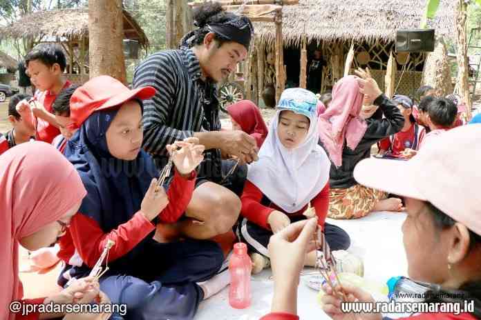SEJUMLAH pelajar SD Semesta Srondol, Kota Semarang, berlatih membuat kerajinan