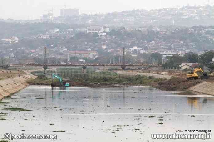 Mengantisipasi datangnya musim penghujan, endapan aliran Sungai Banjir Kanal Timur (BKT) mulai dikeruk. Mengingat sedimentasi sudah begitu tinggi. Seperti diketahui, setiap hujan deras, debit sungai BKT meningkat, bahkan di titik tanggul tertentu air meluber hingga membanjiri permukiman warga. Saat ini proses normalisasi BKT juga terus dikebut. (ADITYO DWI/RADARSEMARANG.COM)