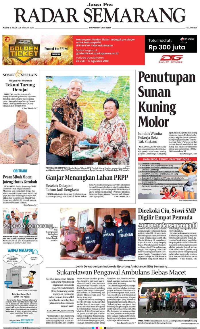 RubrikE-Paper Radar Semarang Edisi 8 Agustus 2019 Thursday, 8 August 2019 @10:00 wib 971 Share FacebookTwitterWhatsAppTelegramPrintCopy URL Radar Semarang Edisi 8 Agustus 2019 1 of 12