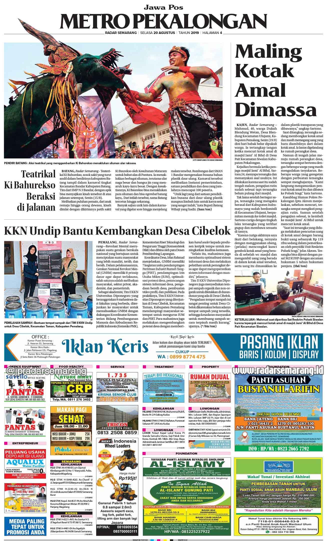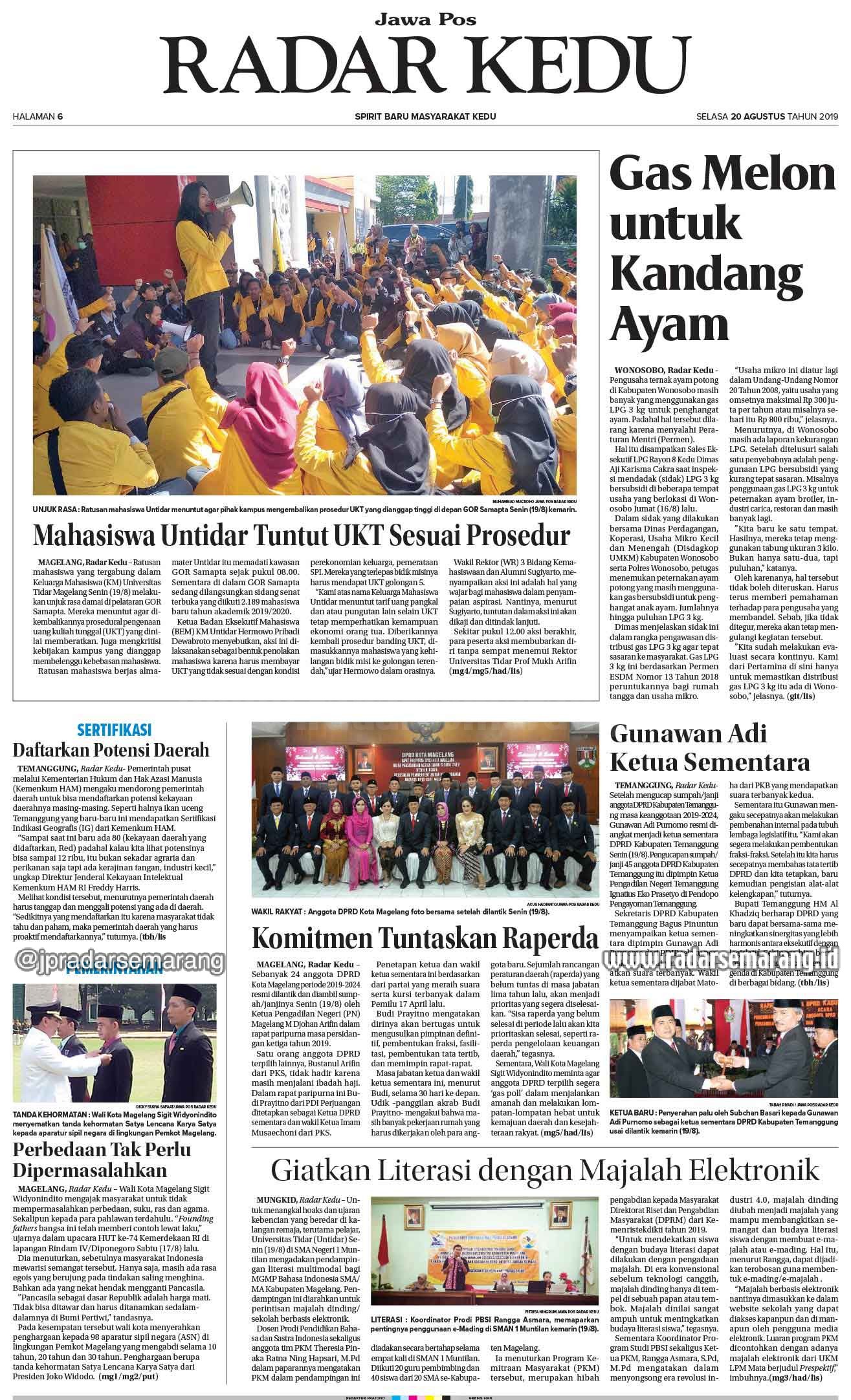RubrikE-Paper Radar Semarang Edisi 20 Agustus 2019 Tuesday, 20 August 2019 @10:00 wib 605 Share FacebookTwitterWhatsAppTelegramPrintCopy URL Radar Semarang Edisi 20 Agustus 2019 1 of 12
