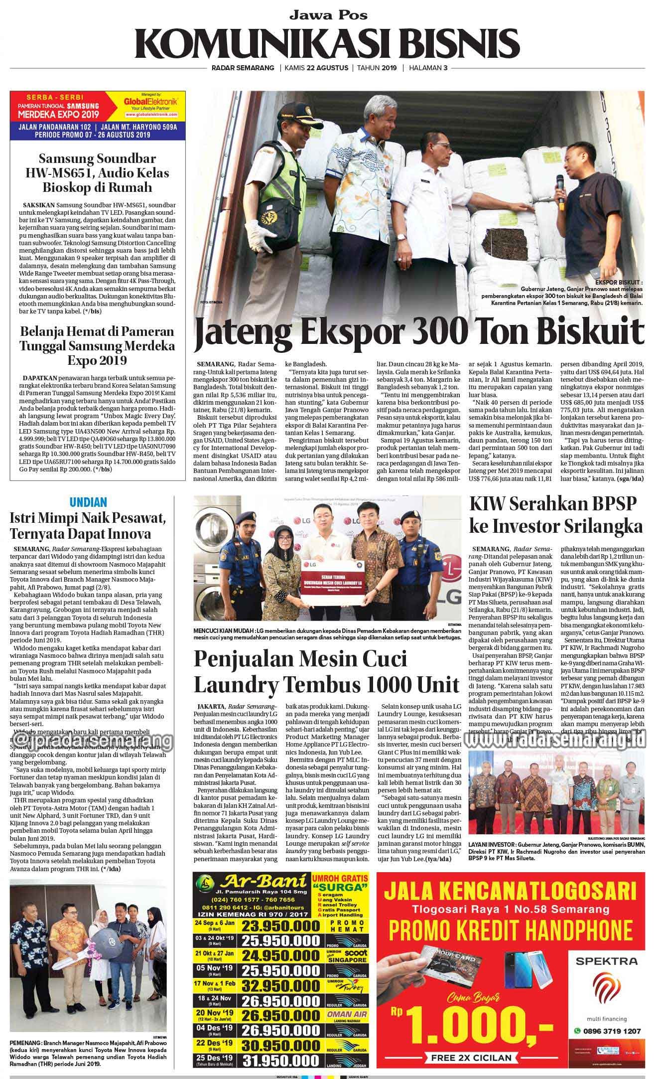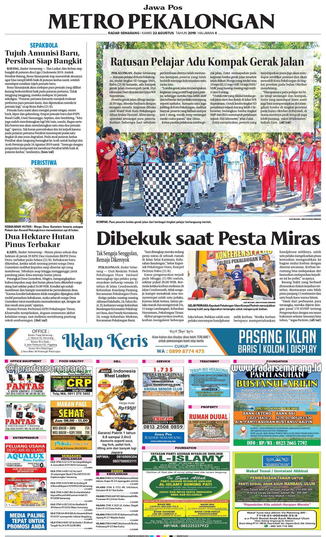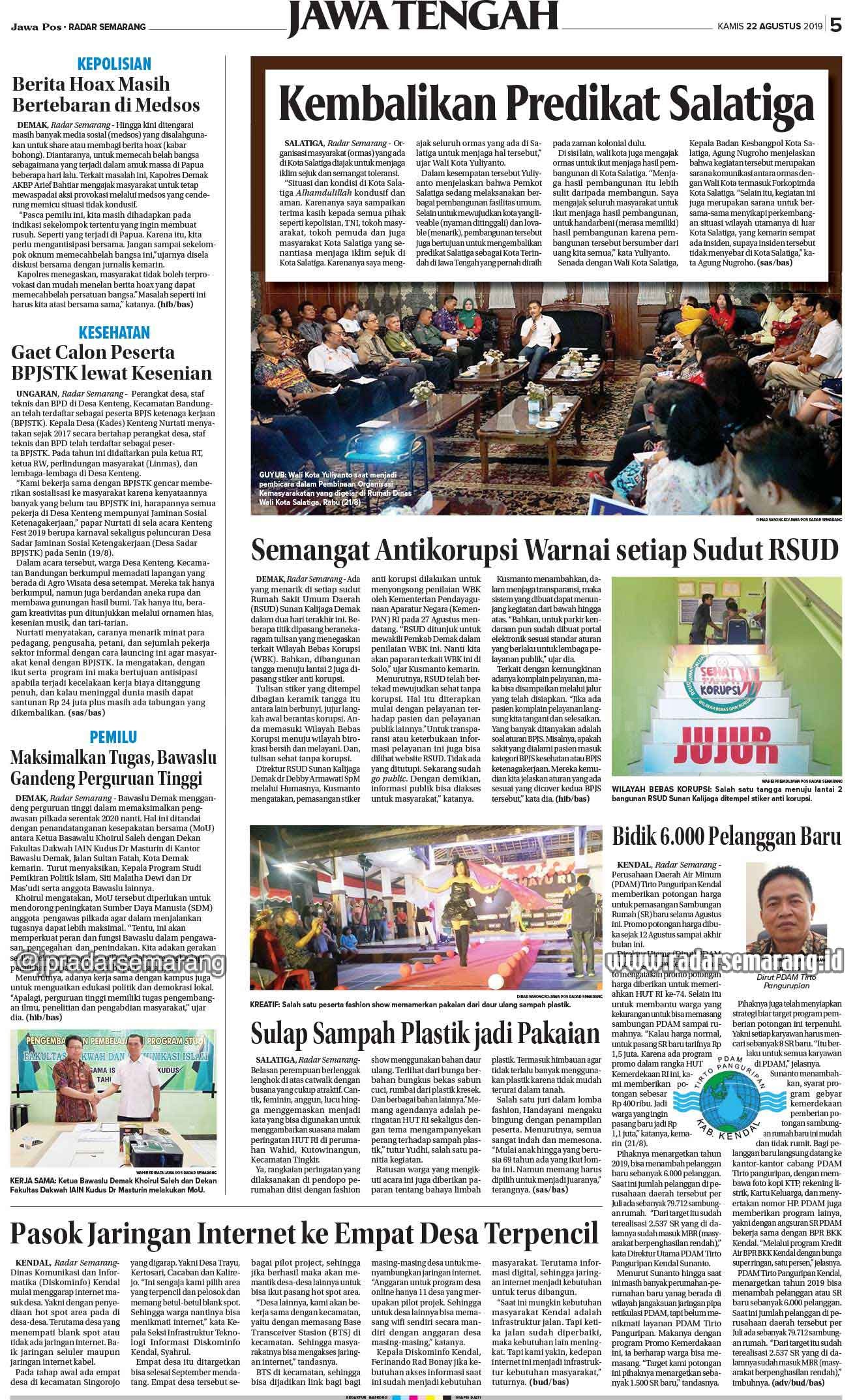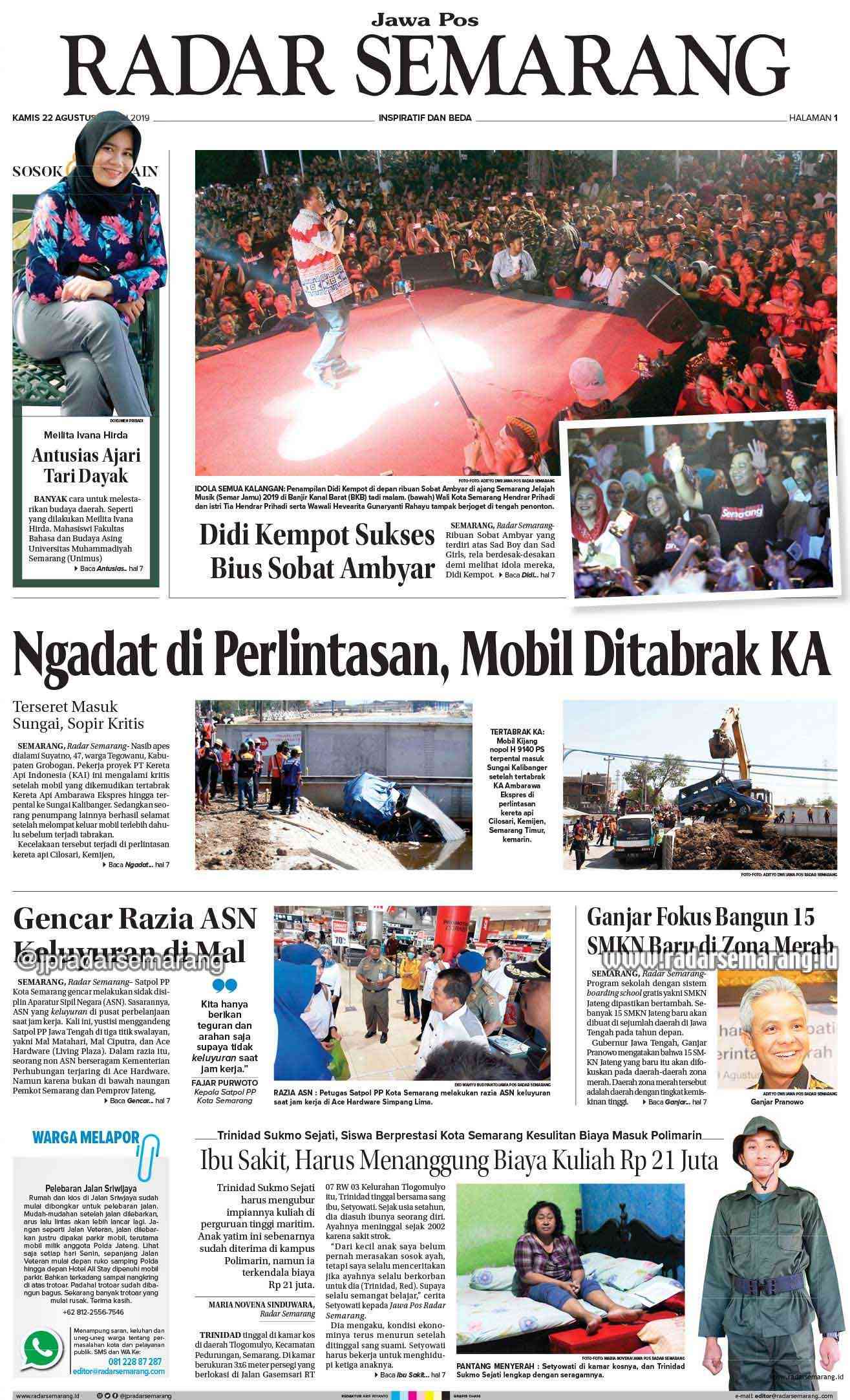 RubrikE-Paper Radar Semarng Edisi 22 Agustus 2019 Thursday, 22 August 2019 @10:00 wib 757 Share FacebookTwitterWhatsAppTelegramPrintCopy URL Radar Semarng Edisi 22 Agustus 2019 1 of 8