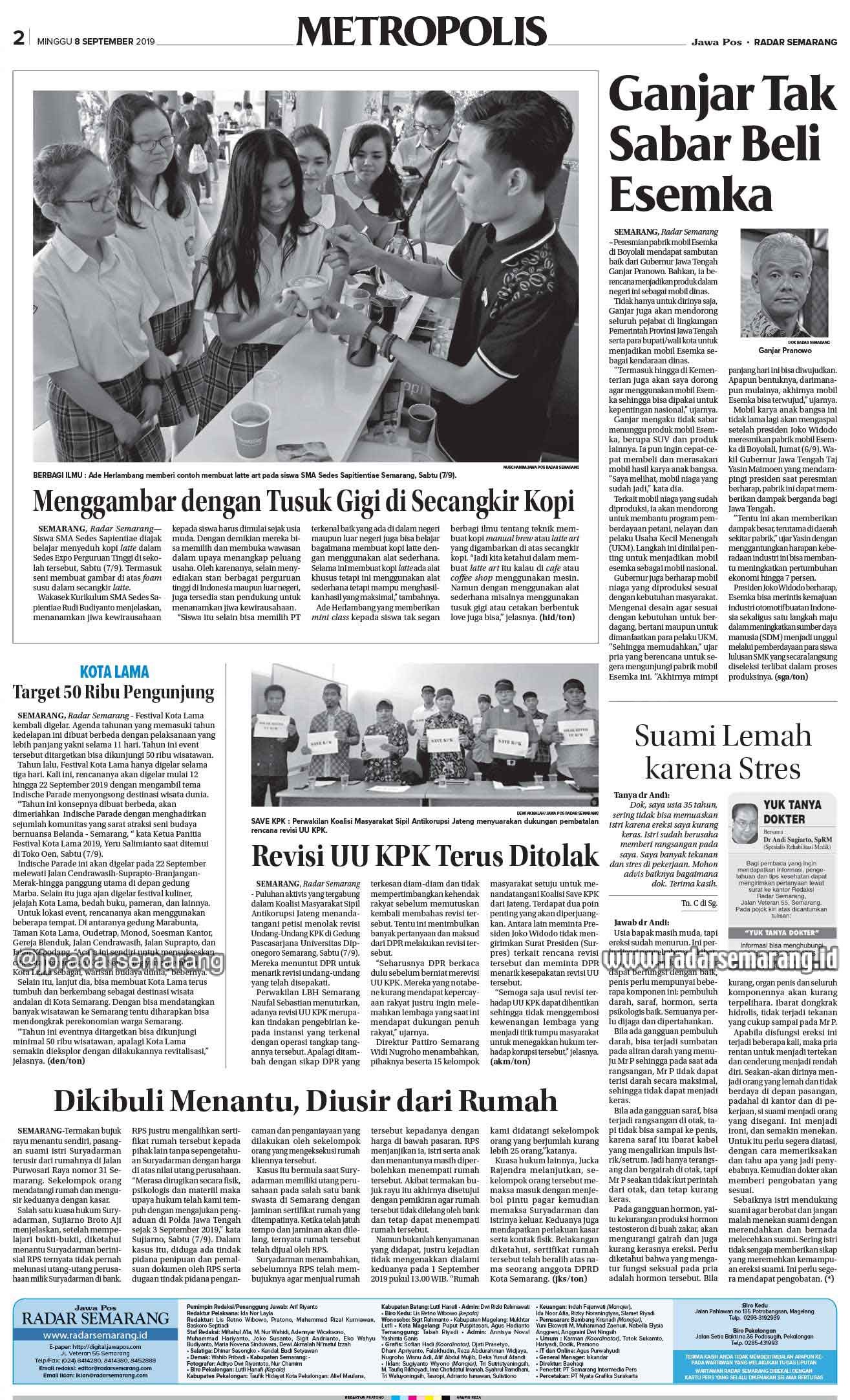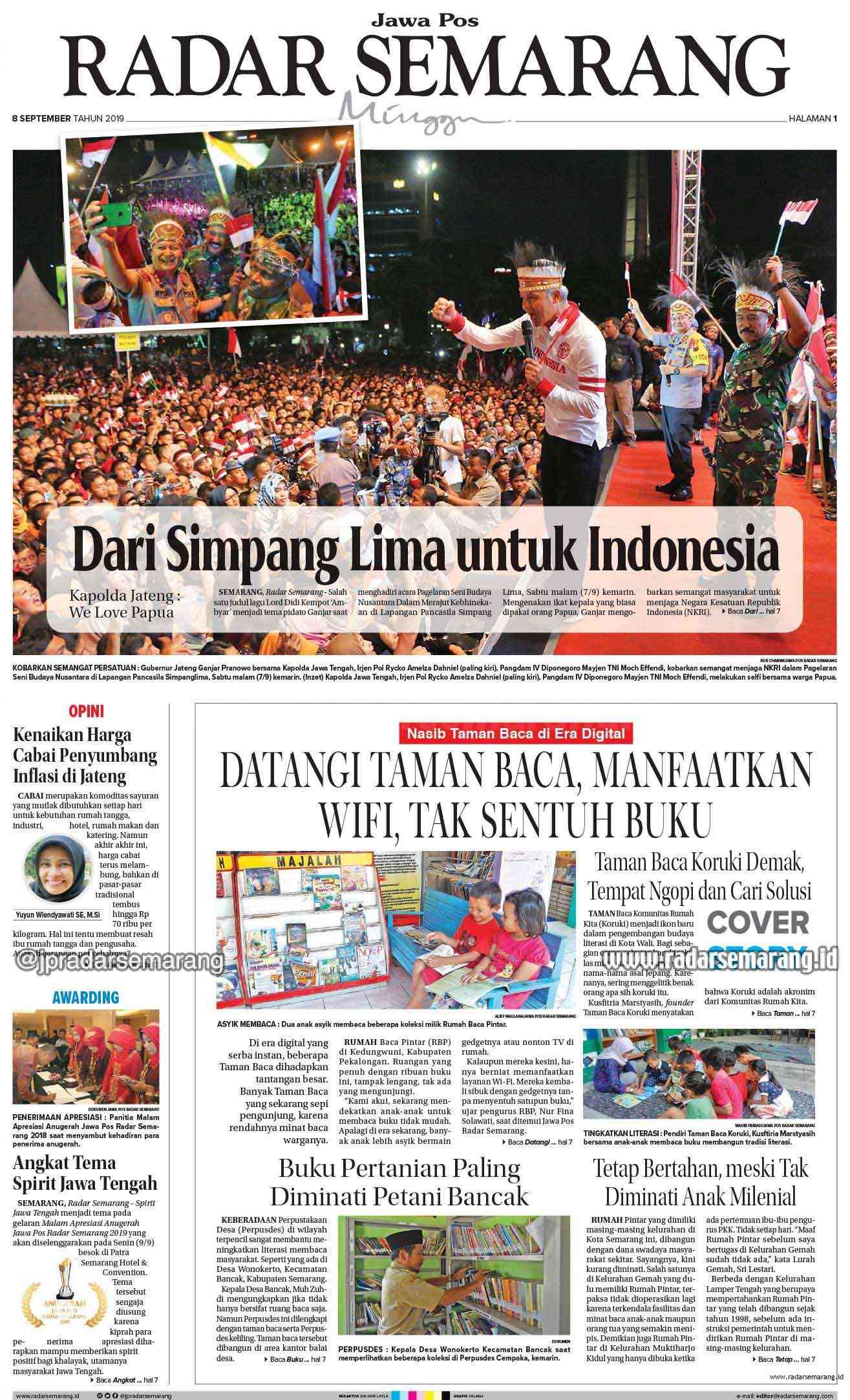 RubrikE-Paper Radar Semarang Edisi 8 September 2019 Sunday, 8 September 2019 @19:32 wib 545 Share FacebookTwitterWhatsAppTelegramPrintCopy URL Radar Semarang Edisi 8 September 2019 1 of 8