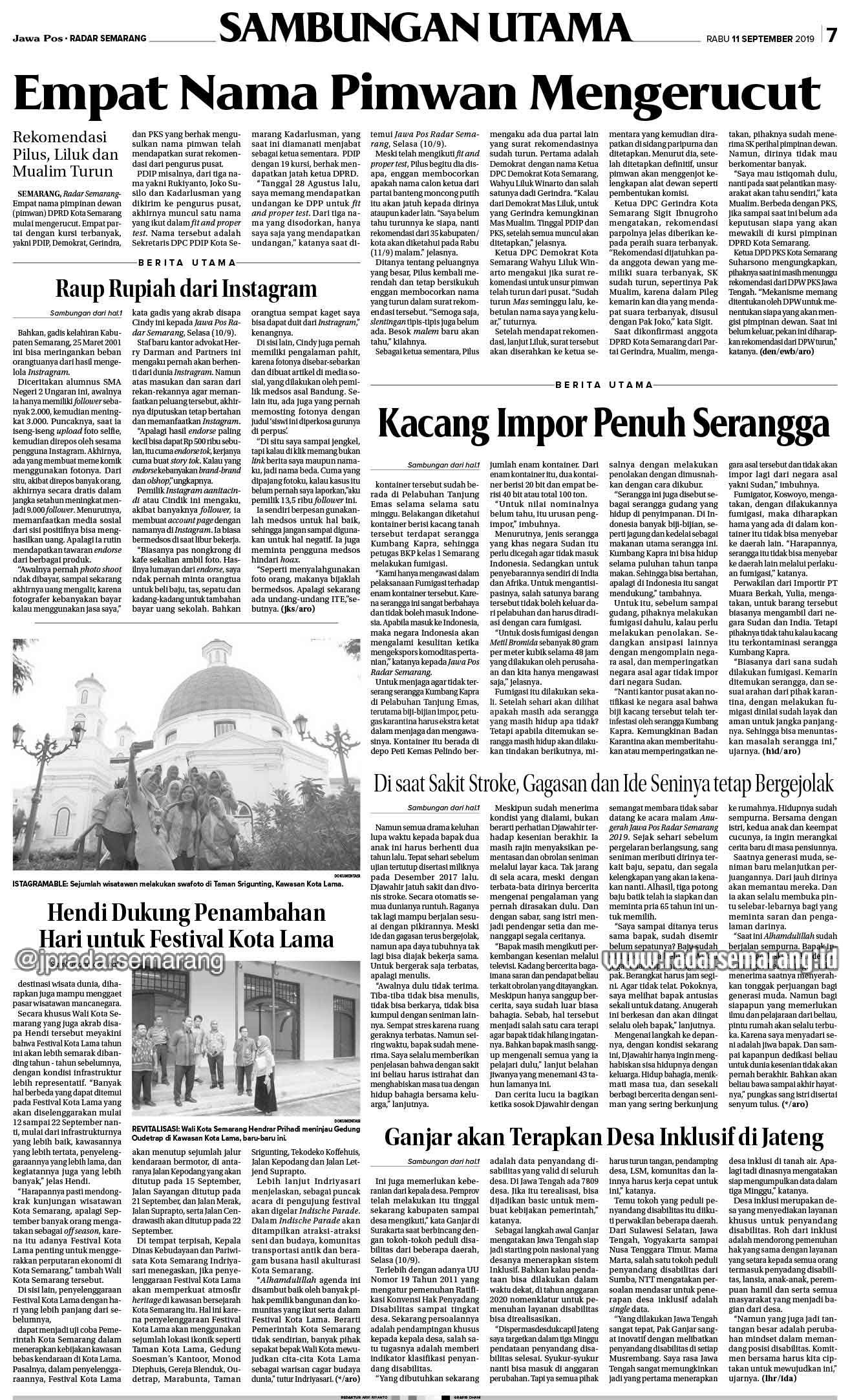 RubrikE-Paper Radar Semarang Edisi 11 September 2019 Wednesday, 11 September 2019 @10:00 wib 1469 Share FacebookTwitterWhatsAppTelegramPrintCopy URL Radar Semarang Edisi 11 September 2019 1 of 11