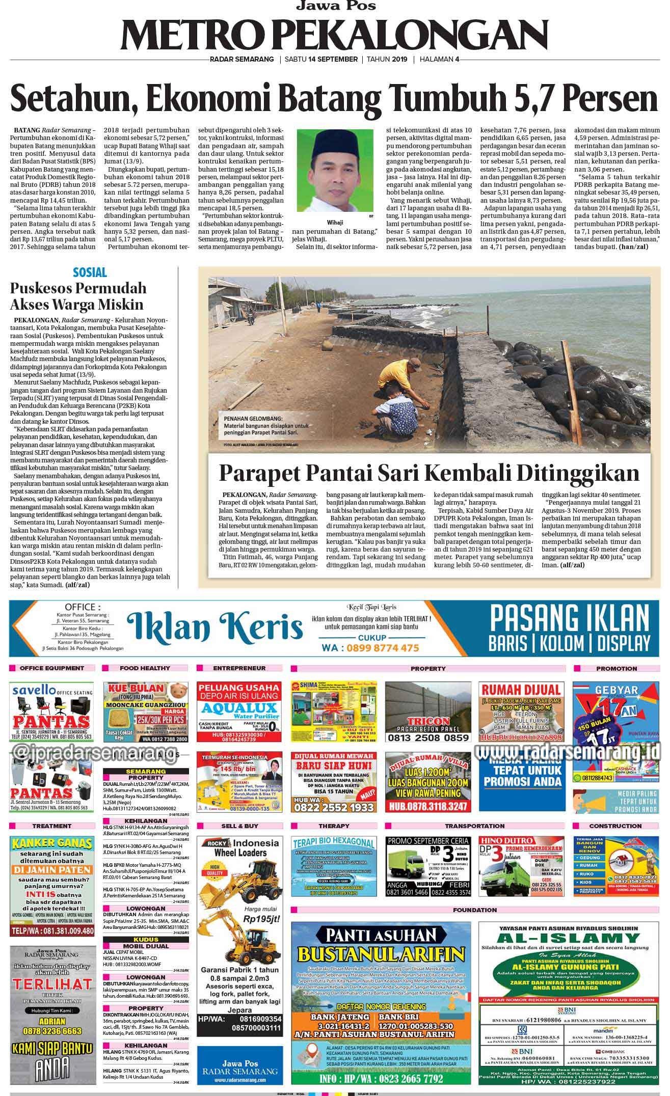RubrikE-Paper Radar Semarang Edisi 14 September 2019 Saturday, 14 September 2019 @10:00 wib 1126 Share FacebookTwitterWhatsAppTelegramPrintCopy URL Radar Semarang Edisi 14 September 2019 1 of 12