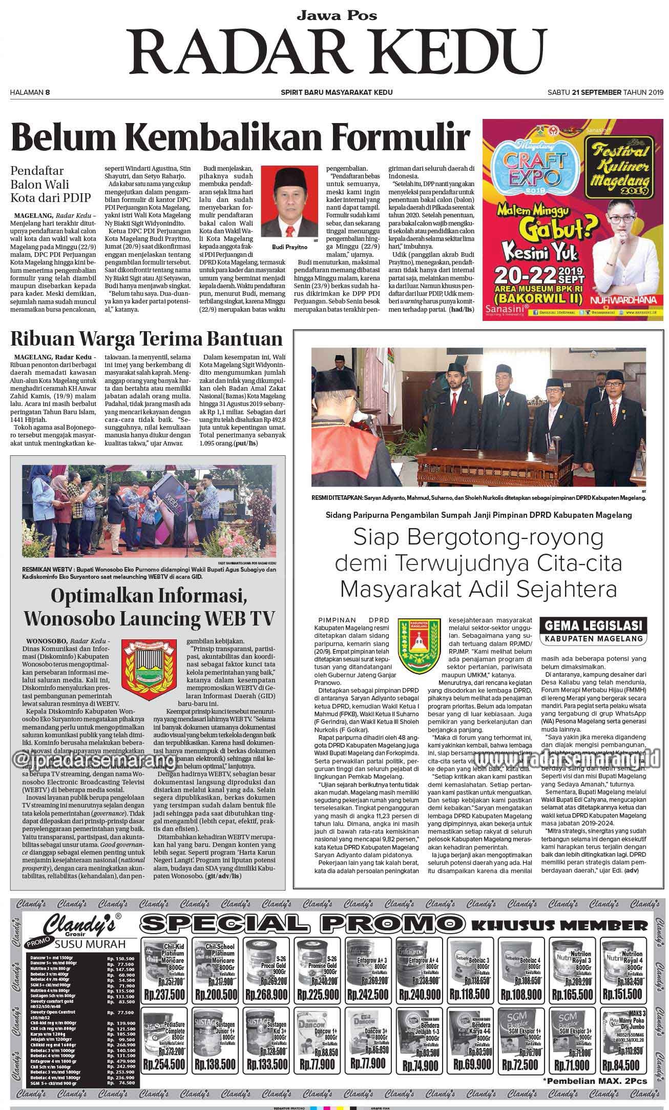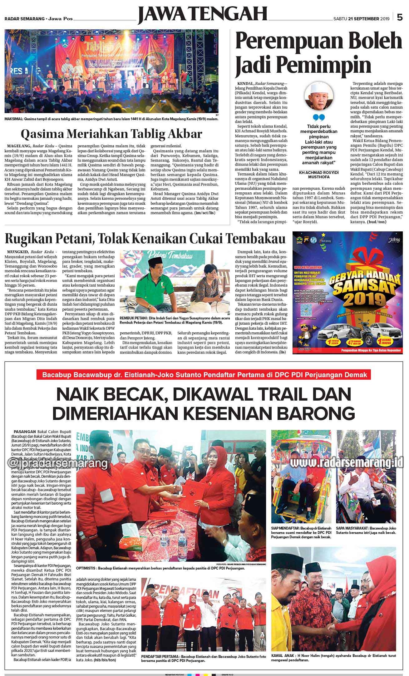 E-Paper Radar Semarang Edisi 21 September 2019 Saturday, 21 September 2019 @10:00 wib 744 Artikel Lain Radar Semarang Edisi 21 September 2019 1 of 12 Editor: [ap] Share FacebookTwitterWhatsAppTelegramPrintCopy URL Artikel Terkait Radar Semarang dan Agung Putra University Bersatu Cetak Jurnalis Masa Depan! Pendaftaran Seleksi Media Center Haji 1445 H Mulai Dibuka 29 Desember 2023 Itjen Kemenag Percepat Pembentukan 187 Unit Pengendalian Gratifikasi Demi Cegah Korupsi Kemenag Panen Apresiasi dan Penghargaan di Sepanjang Tahun 2023, Apa Sajakah Itu? Bawaslu Kendal sampaikan Surat Imbauan ke 286 Desa Kelurahan Cawapres Prabowo Tinggal Diumumkan, Gibran: Kan Tidak Harus Saya, Yang Muda Banyak Sementara Itu .. Terbaru Radar Semarang dan Agung Putra University Bersatu Cetak Jurnalis Masa Depan! Edukasi Friday, 1 August 2025 @10:23 wib Pendaftaran Seleksi Media Center Haji 1445 H Mulai Dibuka 29 Desember 2023 Haji Friday, 29 December 2023 @23:30 wib Itjen Kemenag Percepat Pembentukan 187 Unit Pengendalian Gratifikasi Demi Cegah Korupsi Nasional Friday, 29 December 2023 @12:13 wib Kemenag Panen Apresiasi dan Penghargaan di Sepanjang Tahun 2023, Apa Sajakah Itu? Nasional Wednesday, 27 December 2023 @22:12 wib Bawaslu Kendal sampaikan Surat Imbauan ke 286 Desa Kelurahan Kendal Monday, 18 December 2023 @21:21 wib Load more Populer Radar Semarang Edisi 22 Oktober 2019 Radar Semarang Edisi 1 Agustus 2019 Radar Semarang Edisi 8 Agustus 2019 Radar Semarang Edisi 17 Agustus 2019 Radar Semarang Edisi 20 Agustus 2019 Load more Menarik Lainnya