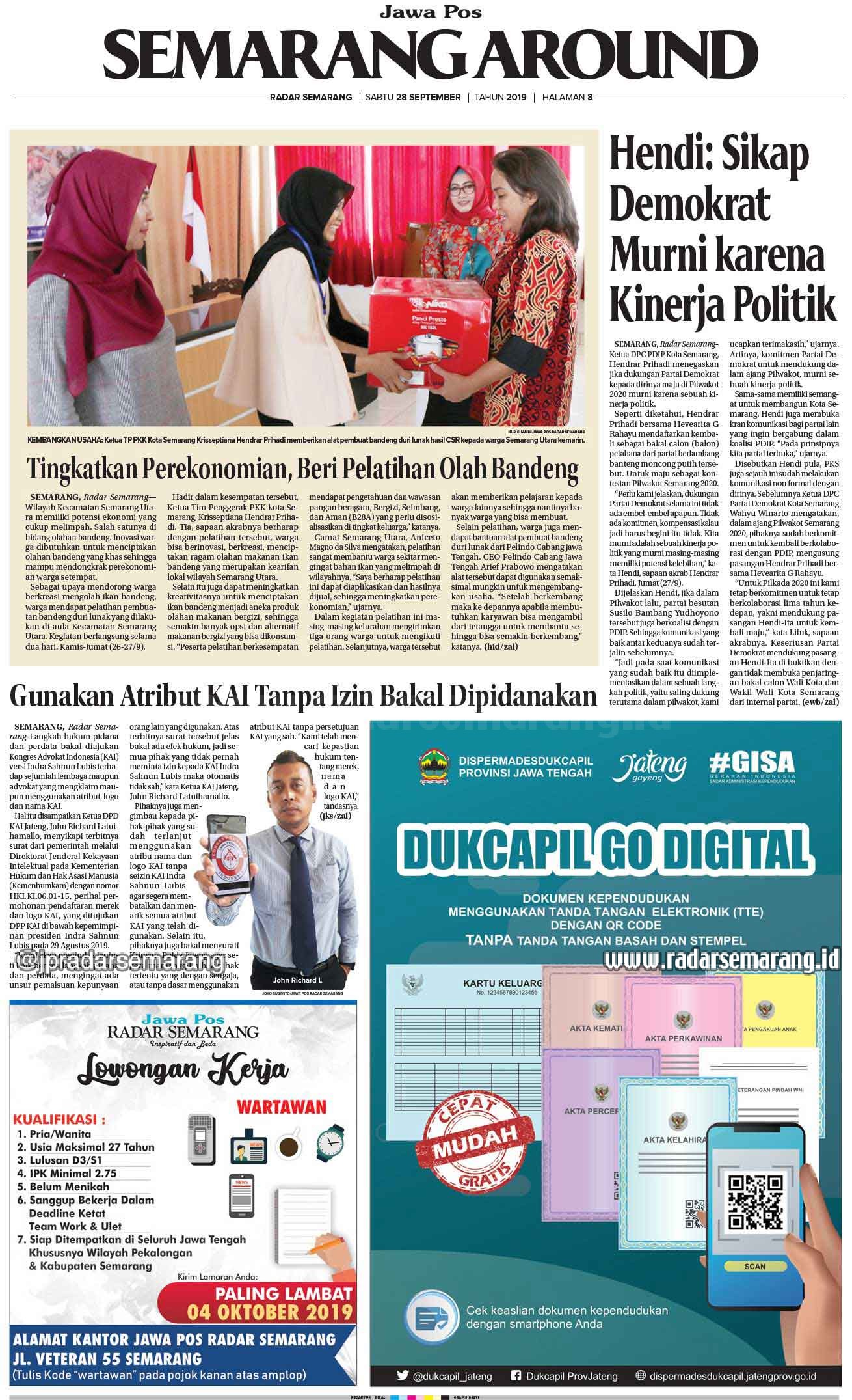 RubrikE-Paper Radar Semarang Edisi 28 September 2019 Saturday, 28 September 2019 @10:00 wib 800 Share FacebookTwitterWhatsAppTelegramPrintCopy URL Radar Semarang Edisi 28 September 2019 1 of 12