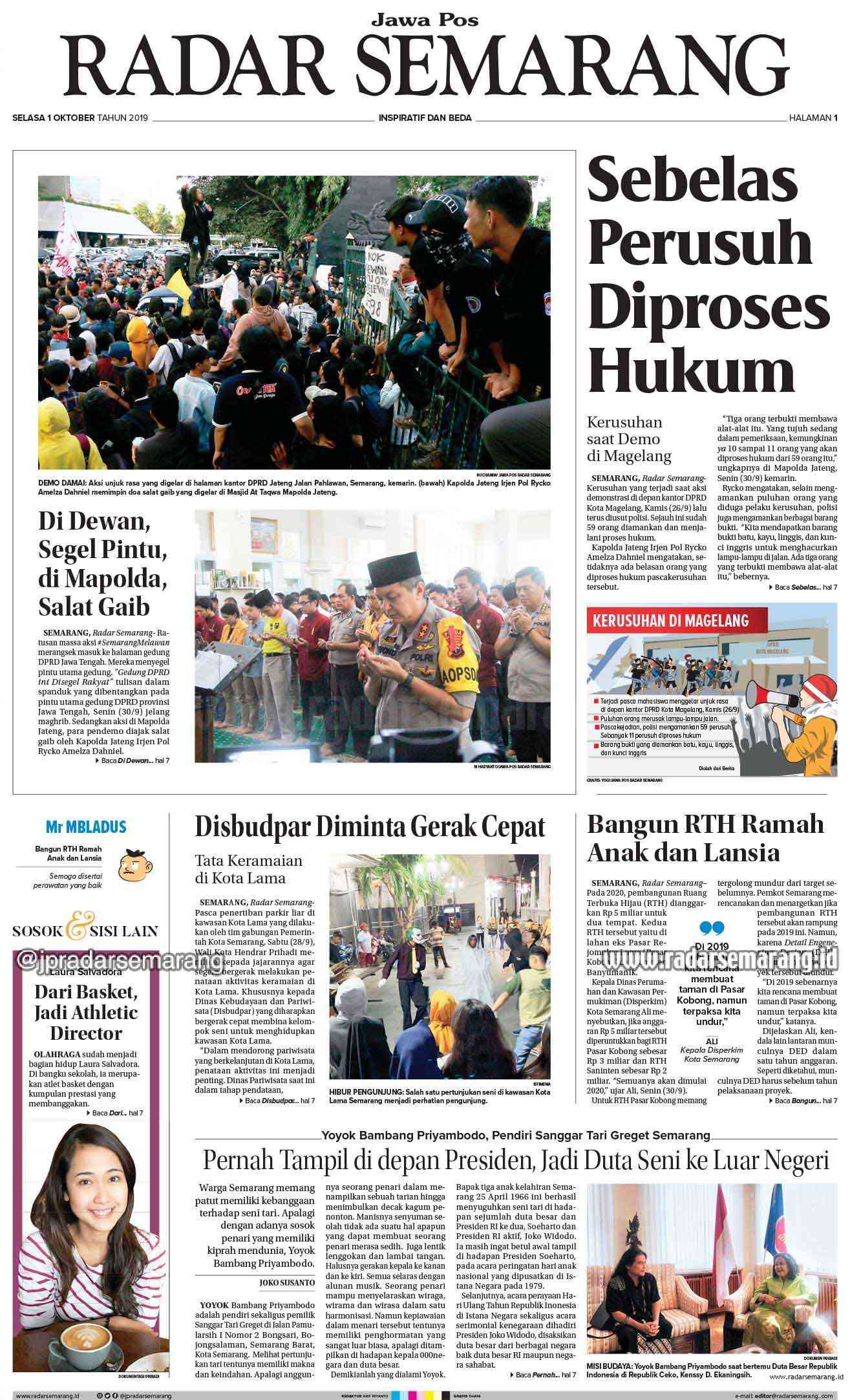 RubrikE-Paper Radar Semarang Edisi 1 Oktober 2019 Tuesday, 1 October 2019 @10:00 wib 538 Share FacebookTwitterWhatsAppTelegramPrintCopy URL Radar Semarang Edisi 1 Oktober 2019 1 of 12