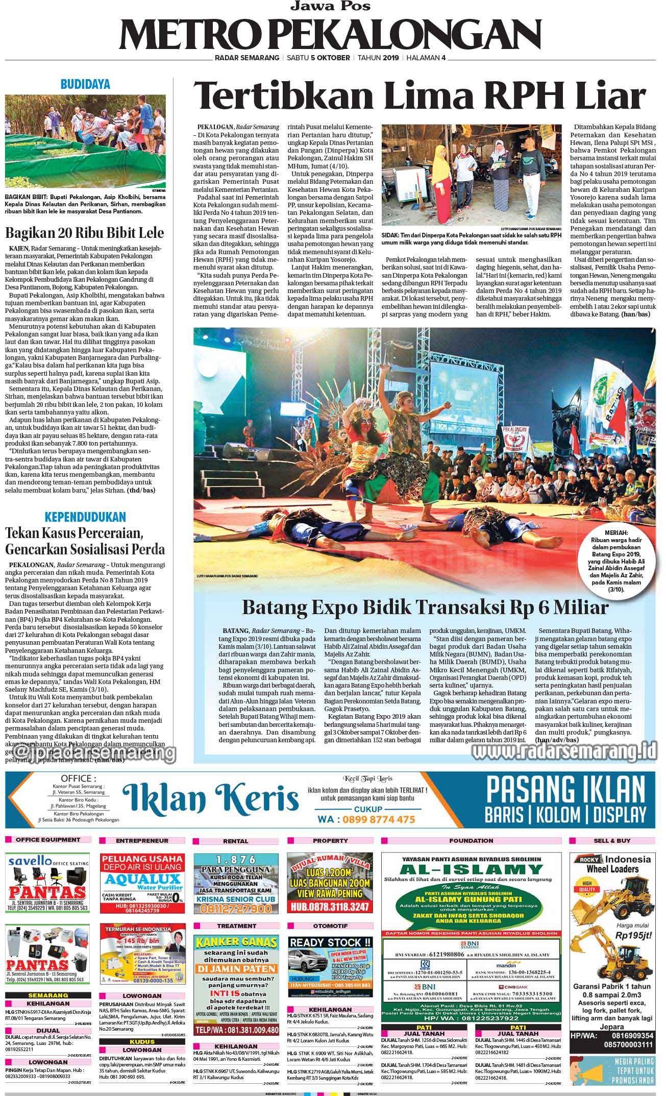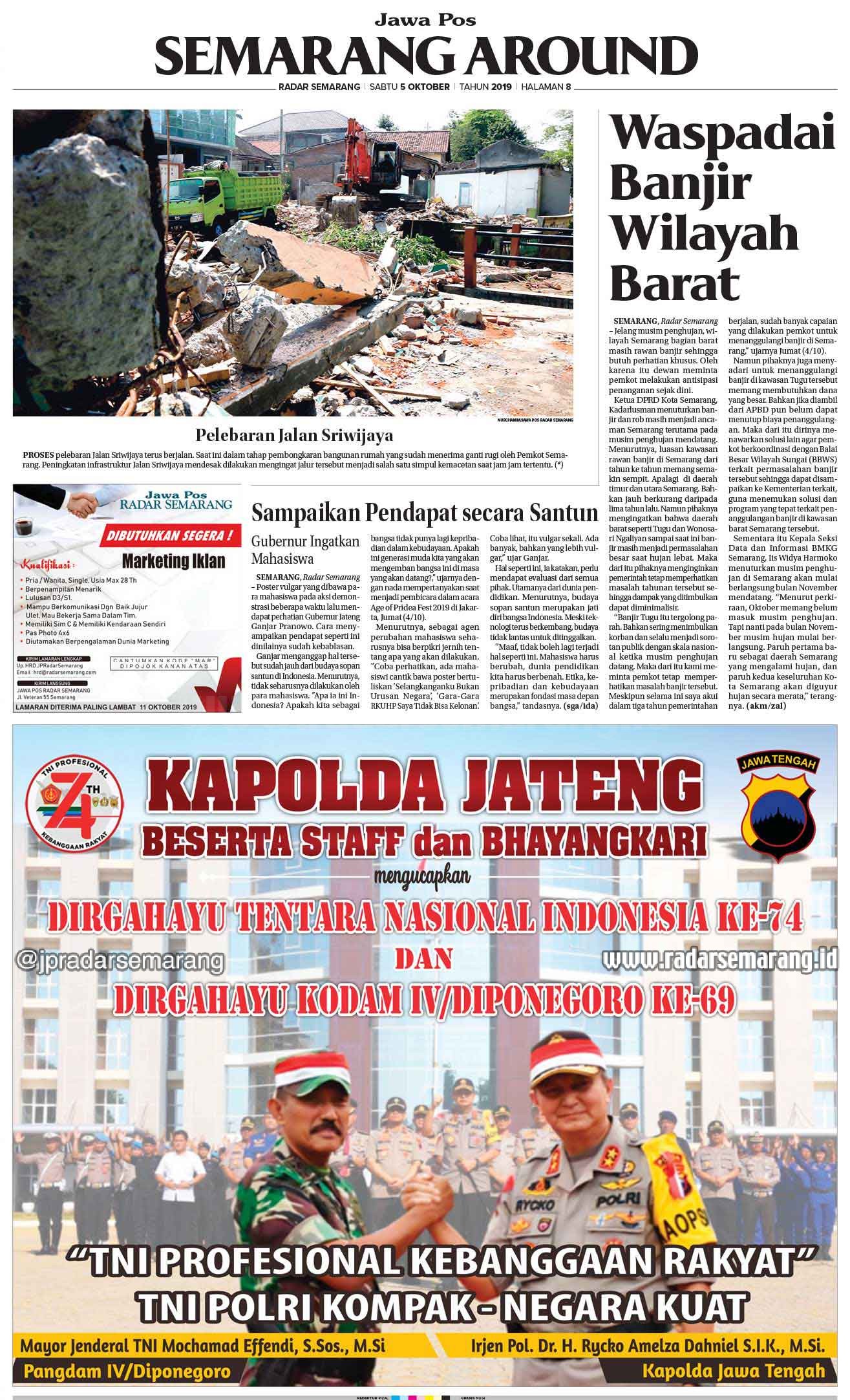 RubrikE-Paper Radar Semarang Edisi 5 Oktober 2019 Saturday, 5 October 2019 @10:00 wib 964 Share FacebookTwitterWhatsAppTelegramPrintCopy URL Radar Semarang 5 Oktober 2019 1 of 12