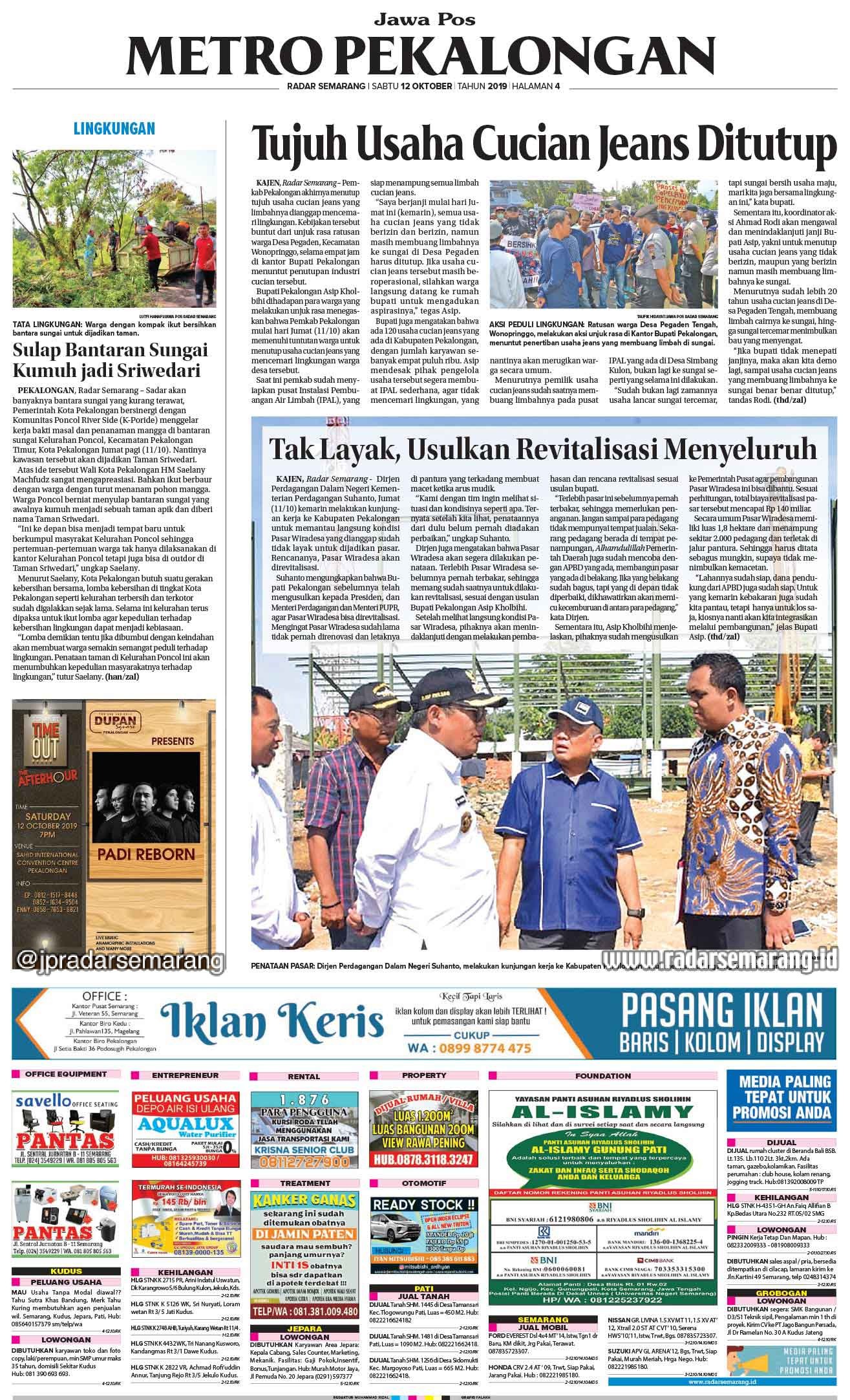 RubrikE-Paper Radar Semarang Edisi 12 Oktober 2019 Saturday, 12 October 2019 @10:00 wib 696 Share FacebookTwitterWhatsAppTelegramPrintCopy URL Radar Semarang Edisi 12 Oktober 2019 1 of 12