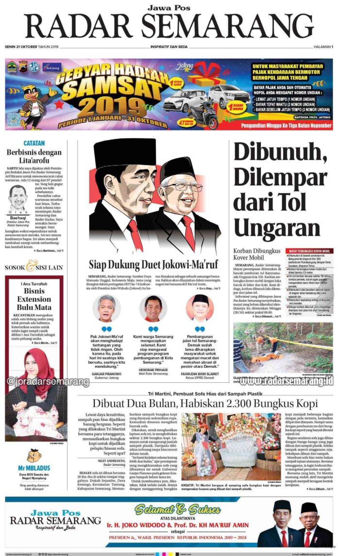 RubrikE-Paper Radar Semarang Edisi 21 Oktober 2019 Monday, 21 October 2019 @10:00 wib 910 Share FacebookTwitterWhatsAppTelegramPrintCopy URL Radar Semarang Edisi 21 Oktober 2019 1 of 12
