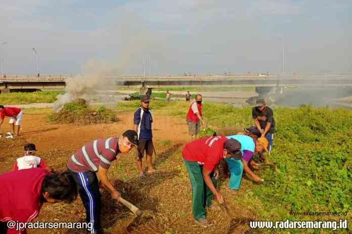 RADARSEMARANG.COM, Semarang – Puluhan warga RW 03 Kelurahan Sawah Besar Kecamatan Gayamsari Kota Semarang menggelar kerjabakti membersihkan sampah di bantaran Banjir Kanal Timur (BKT), Minggu (14/6/2020). Dalam kegiatan tersebut warga membawa peralatan seadanya membersihkan bantaran sungai dari sampah.