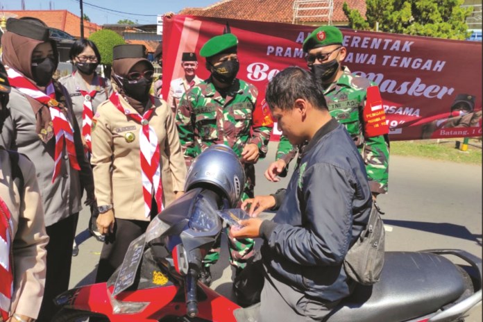 “Selain membagikan masker, perlu ada edukasi kepada masyarakat tentang pentingnya menjaga dan menaati protokol kesehatan. Itu harus dilakukan secara terus-menerus,” ujar Uni Kuslantasi Wihaji saat membagikan masker di Kecamatan Batang bersama gerakan Pramuka Kwarcab Batang, Kamis (1/10/2020).