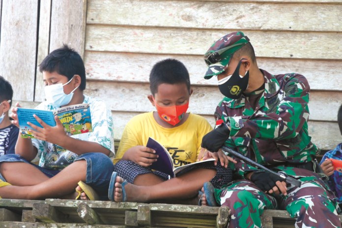 RADARSEMARANG.COM, Sintang – Satgas TMMD 109/Sintang berupaya memompa semangat anak-anak perbatasan agar gemar membaca.
