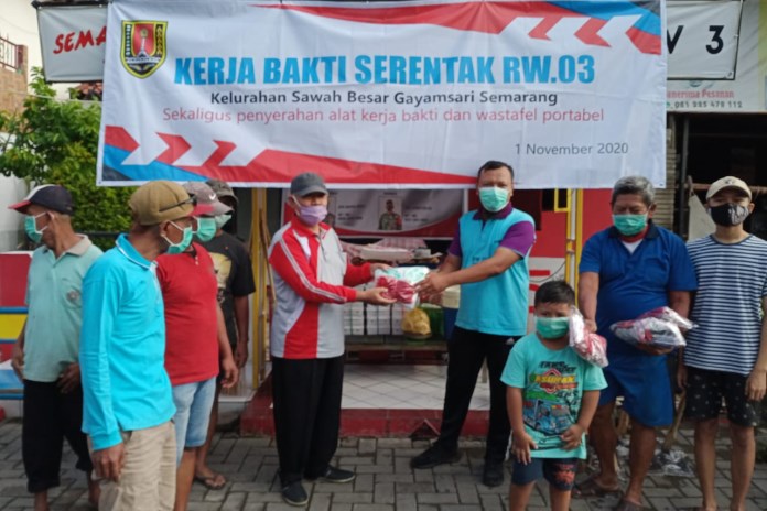 Kerjabakti tersebut dilakukan dengan membersihkan saluran dan membuat lapangan olahraga. Dalam kesempatan tersebut, Pemkot Semarang memberikan bantuan berupa peralatan kerja bakti berupa sapu dan wastafel portabel kepada masing-masing ketua RW.