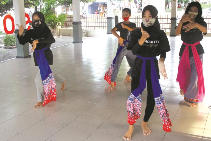 RADARSEMARANG.COM, Semarang – Puluhan siswa dari berbagai kelurahan di Kota Semarang mengikuti pelatihan menari dengan menerapkan protokol kesehatan (prokes) di gedung Sobokarti, Jumat (6/11/2020). Latihan ini untuk persiapan mengikuti lomba tari Desember mendatang di Jogjakarta.