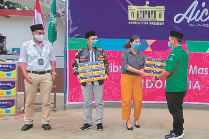 Masker tersebut diproduksi oleh perusahaan es krim bekerja sama dengan GP Ansor, dan kantor staf presiden. “Kami melihat yang bisa membantu masyarakat saat ini adalah masker. Kami memutuskan memproduksinya untuk dibagikan kepada masyarakat,” timpal Sylvana, brand manager Aice Group.