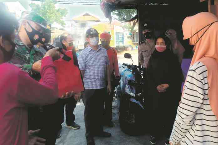 Sementara itu, wajah sumringah terlihat dari Karinem, 63, setelah mendapatkan bantuan sembako. Sebelumnya ia sempat tegang karena masker yang dia pakai sempat ditanggalkan. “Tadi sedang makan pak, maaf kalau ada yang beli, saya pakai masker,” tuturnya sambil meminta maaf.