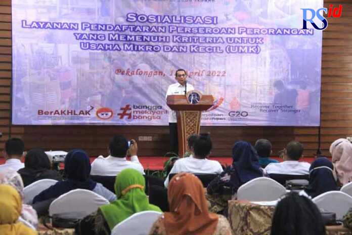 Hal ini disampaikan dalam kegiatan Sosialisasi Layanan Pendaftaran Perseroan Perorangan yang memenuhi kriteria untuk UMK kepada para pelaku UMK se Kota Pekalongan di Function Room Hotel Dafam Pekalongan.