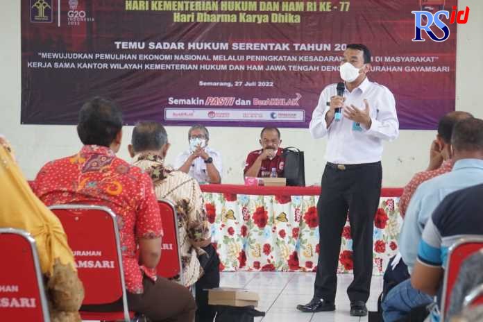 RADARSEMARANG.COM, Semarang – Kantor Wilayah Kemenkumham Jawa Tengah menggelar Temu Sadar Hukum. Hal ini dilakukan guna mewujudkan pemulihan ekonomi nasional melalui peningkatan kesadaran hukum di masyarakat. Kegiatan digelar di tiga kelurahan secara serentak, Rabu (27/07).