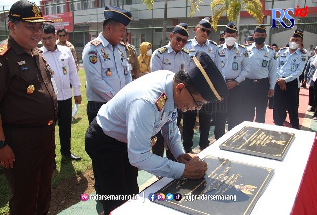 RADARSEMARANG.COM, Boyolali – Kepala Kanwil Kemenkumham Jateng Dr A Yuspahruddin meresmikan penggunaan Masjid dan Poliklinik Rutan Kelas IIB Boyolali, Senin (19/12). Peresmian ditandai dengan pemukulan gong, penandatanganan prasasti dan pengguntingan rangkaian bunga menandai prosesi tersebut.