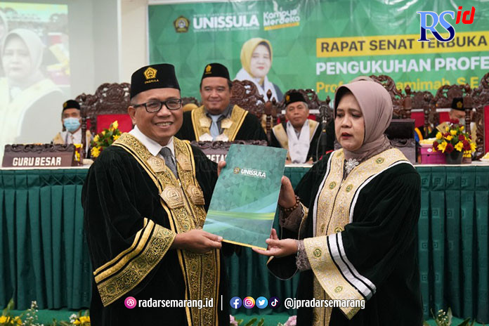 RADARSEMARANG.COM, SEMARANG – Rektor Unissula Prof Dr Gunarto SH MH mengukuhkan guru besar baru di kampus Unissula (29/12). Ia adalah Prof Dr Mutamimah SE MSi. Prof Mutamimah merupakan Profesor ke 11 di Fakultas Ekonomi Unissula. Merupakan profesor ke 28 di Unissula.