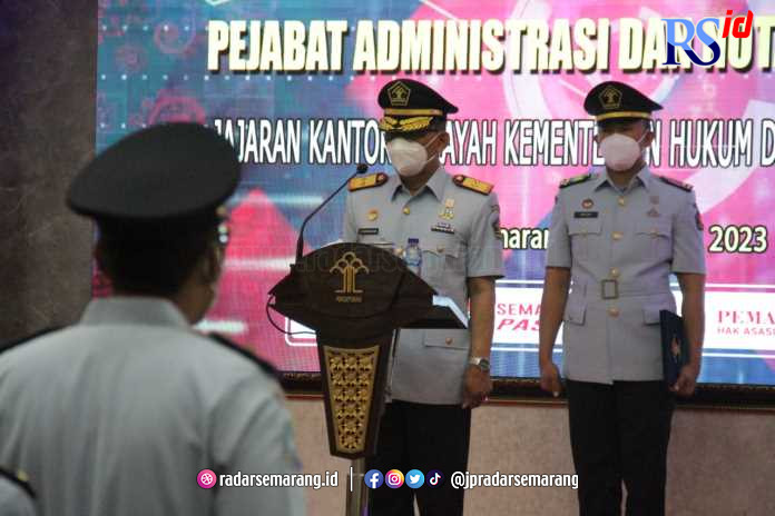 RADARSEMARANG.COM, Semarang – Sebanyak 11 (sebelas) orang Pejabat Administrasi Eselon V dan 1 (satu) orang Notaris pengganti dilantik dan diambil sumpah oleh Kepala Kantor Wilayah Kementerian Hukum dan HAM Jawa Tengah, A Yuspahruddin, Senin (02/01).